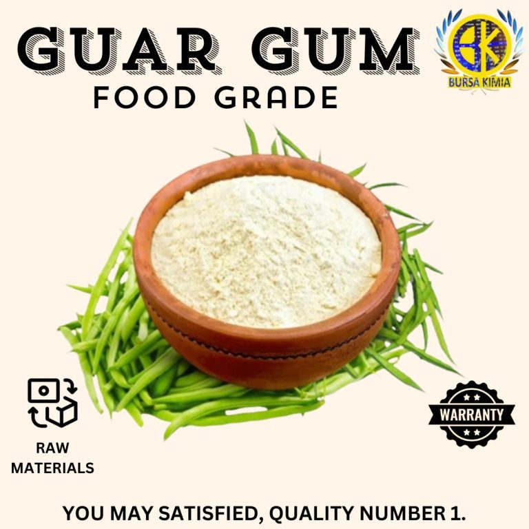 Untuk menstabilkan, mengentalkan, dan mengemulsi produk industri, seperti lotion, suplemen serat, yogurt, dan lainnya. Guar gum membantu tubuh Anda menyerap dan mencerna nutrisi dari makanan yang Anda konsumsi. Guar gum tidak mempunyai banyak nutrisi, tapi rendah kalori dan tinggi serat sehingga membantu Anda membuat kenyang tanpa harus makan banyak dan khawatir mengalami kenaikan berat badan.